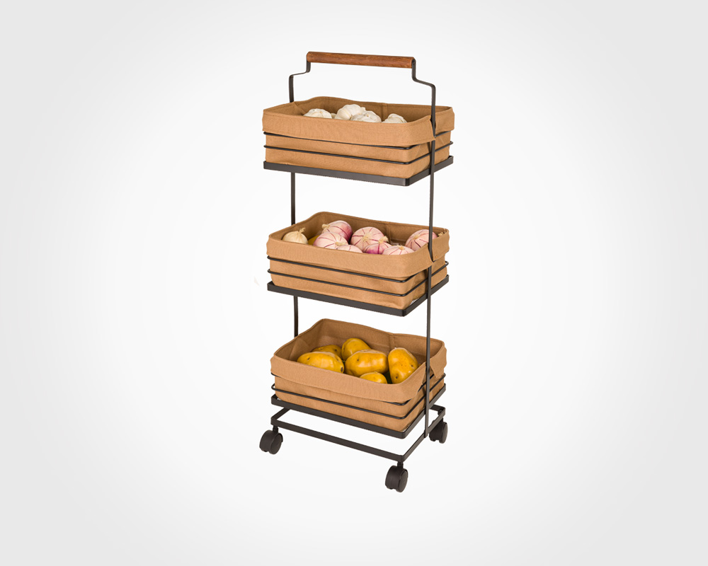 جا سیب زمینی و پیاز فلزی 3 طبقه دسته چوبی لیمون