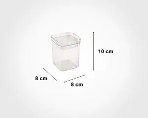 | ۸ سانتیمتر | ۸ سانتیمتر | ۱۰ سانتیمتر | ۲۵۰ میلی لیتر |
