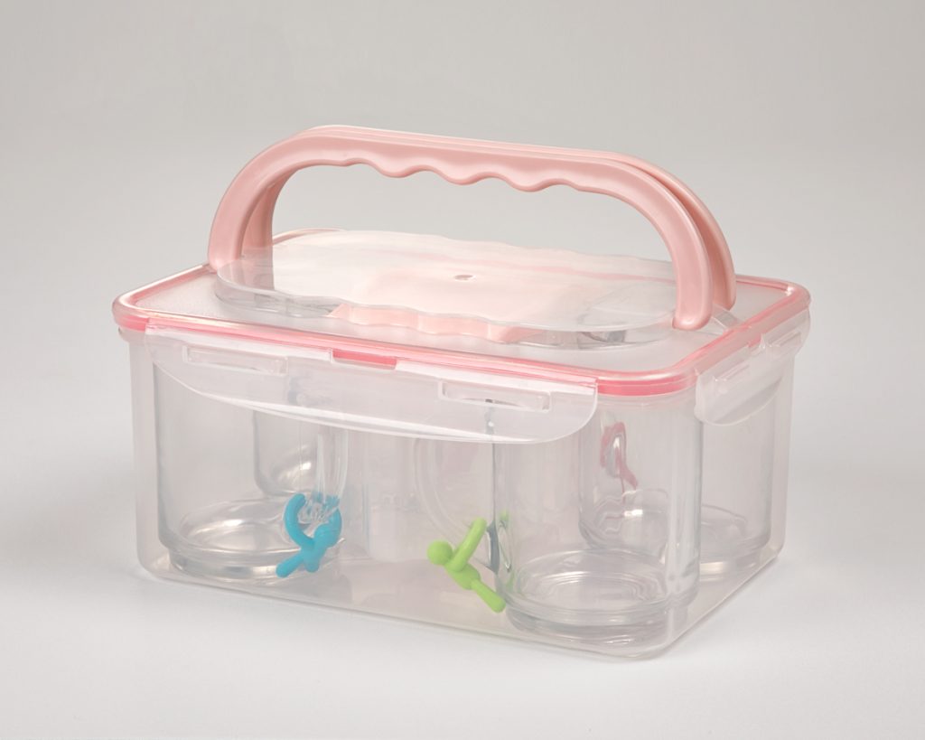 - شامل چهار لیوان استاندارد و یک ظرف دربدار دو قسمتی
